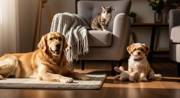 - Sécuriser la maison : supprimer les produits toxiques, protéger les fils électriques, vérifier la solidité des clôtures pour un chien, installer des cachettes et points en hauteur pour un chat.